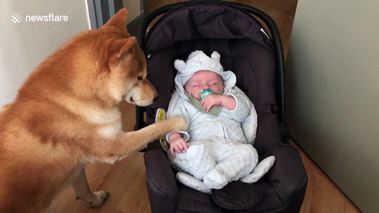 Adorable Moment Shiba Dog Rocks Baby In Cradle Video Dailymotion