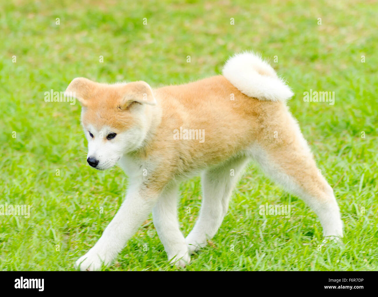 A Profile View Of A Young Beautiful White And Red Akita Inu Puppy