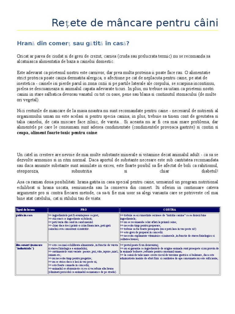 Retete De Mancare Pentru Caini